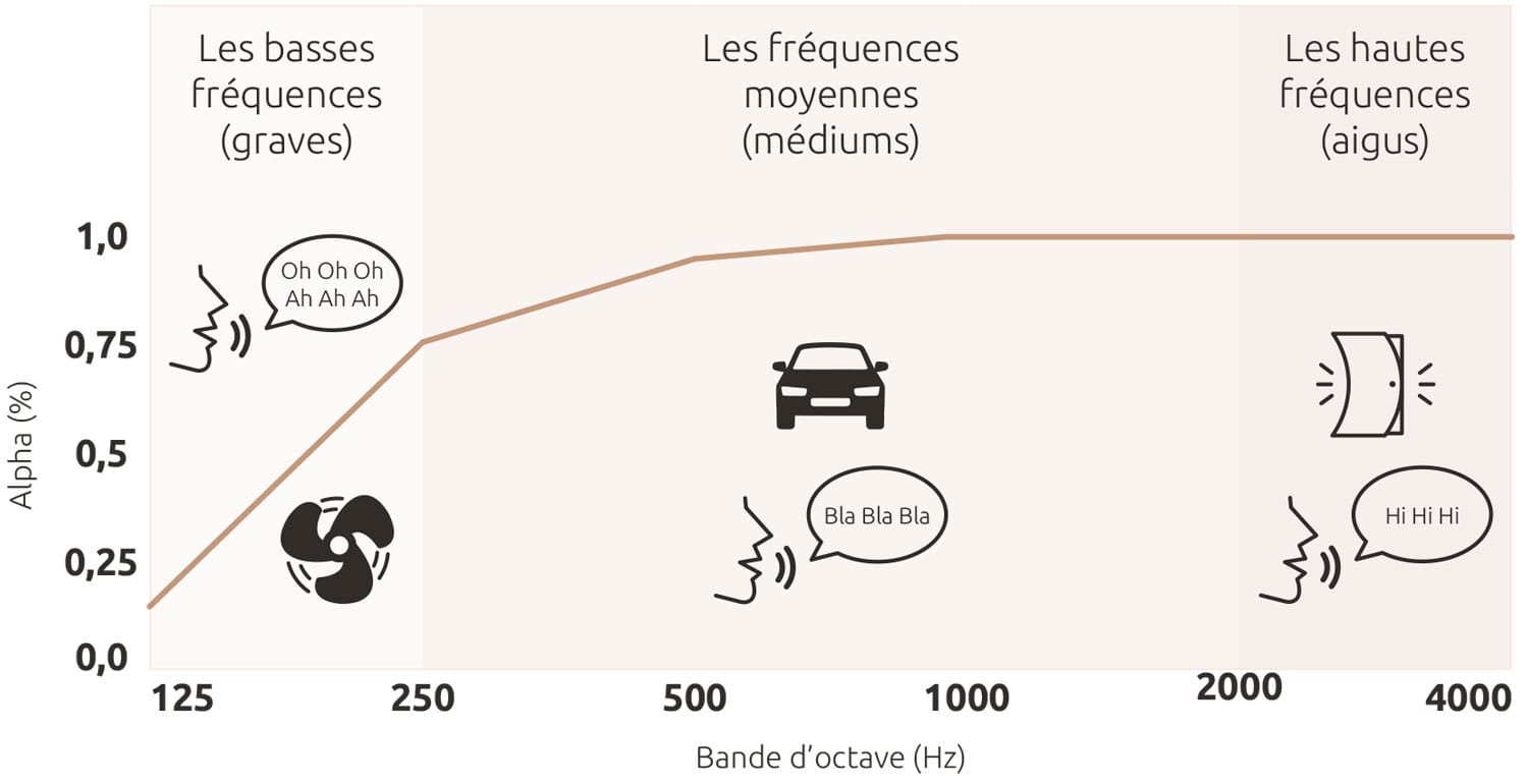 Nos solutions acoustiques permettent d’offrir une absorption sonore optimale sur une très large plage de fréquences allant de 125 à 8 000 Hz.